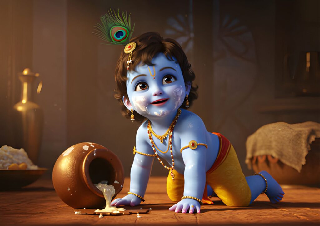 Krishna’s innocent mischief filled Gokul with joy and love.